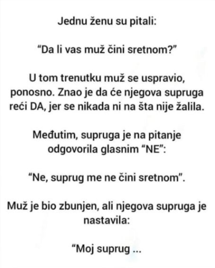 U tom trenutku muž se uspravio, ponosno. Znao je da će njegova supruga reći DA, jer se nikada ni na šta nije žalila.