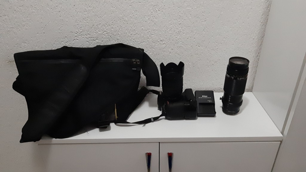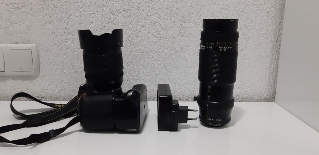 Uz fotoaparat dolaze i dva objektiva Nikon 18-105mm i objektiv 75-300mm,Batterie Professionelle Grip, punjač, dvije baterije, kabal, torba i memory card of 8 gb.
