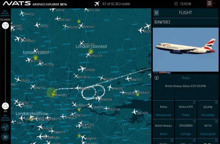 Airspace Explorer pruža podatke o ruti svakog aviona, visini na kojoj leti, njegovoj brzini i tipu.