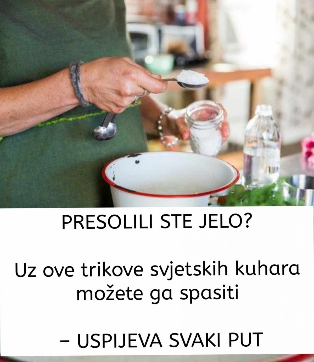 “Jeste li ikad slučajno dodali previše soli u hranu i niste znali što napraviti? Ogulite krumpir, dodajte ga u presoljenu juhu i pustite da se zajedno kuhaju. Krumpir upija višak soli, a na kraju kuhanja ga samo uklonite i poslužite jelo kao da se ništa nije dogodilo”, objasnila je ova snalažljiva mama.