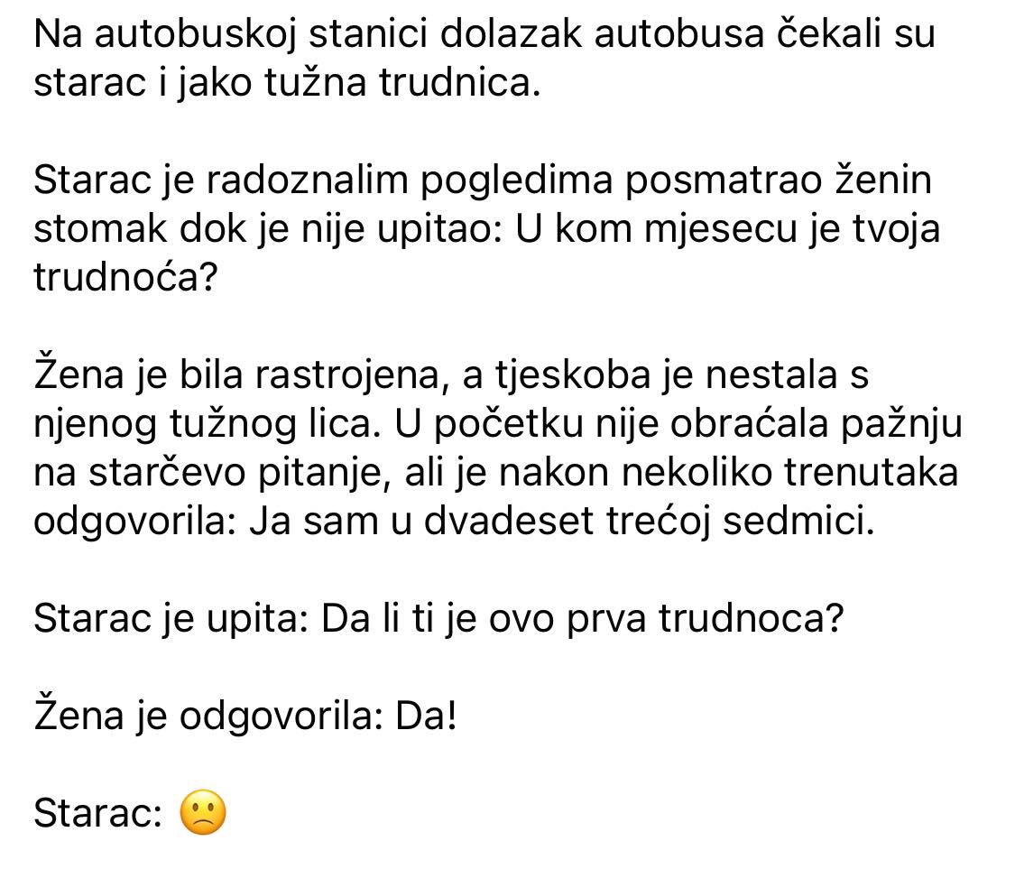 Starac je upita: Da li ti je ovo prva trudnoca?