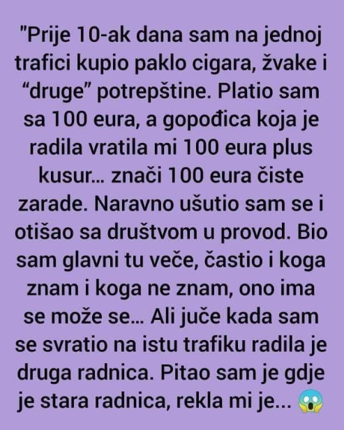 Bio sam glavni tu veče, častio i koga znam i koga ne znam, ono ima se može se… Ali juče kada sam se svratio na istu trafiku radila je druga radnica