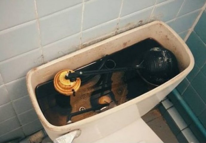Ispraznite vodokotlić i zavrnite ventil. Unutrašnji dio vodokotlića prebrišite suvom krpom pa onda na prljave dijelove nanesite sirće. Ostavite da sirće stoji tako od dva do šest sati, pa onda ogulite nečim, samo pazite da ne bude od metala.