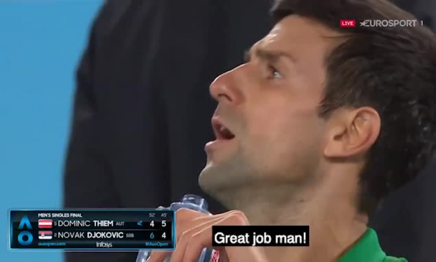 Đoković je u jednom trenutku poludio i na publiku koja je očekivano bila uz Thiema. U prvom setu dok su ga navijači omeli tijekom servisa samo je uzviknuo: