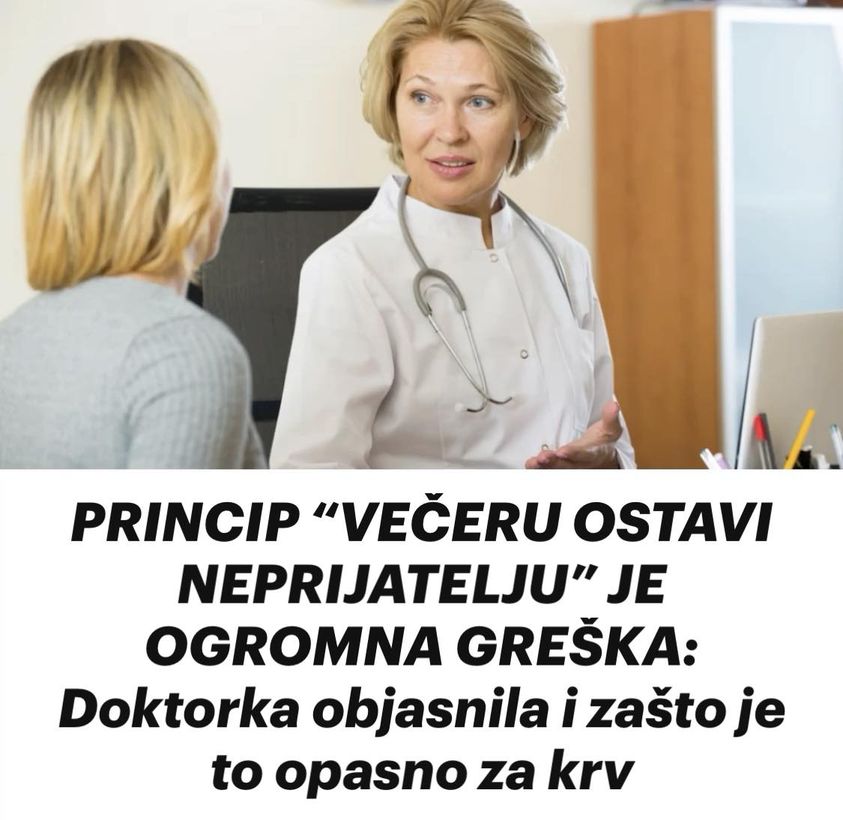 PRINCIP “VEČERU OSTAVI NEPRIJATELJU” JE OGROMNA GREŠKA: Doktorka objasnila i zašto je to opasno za krv