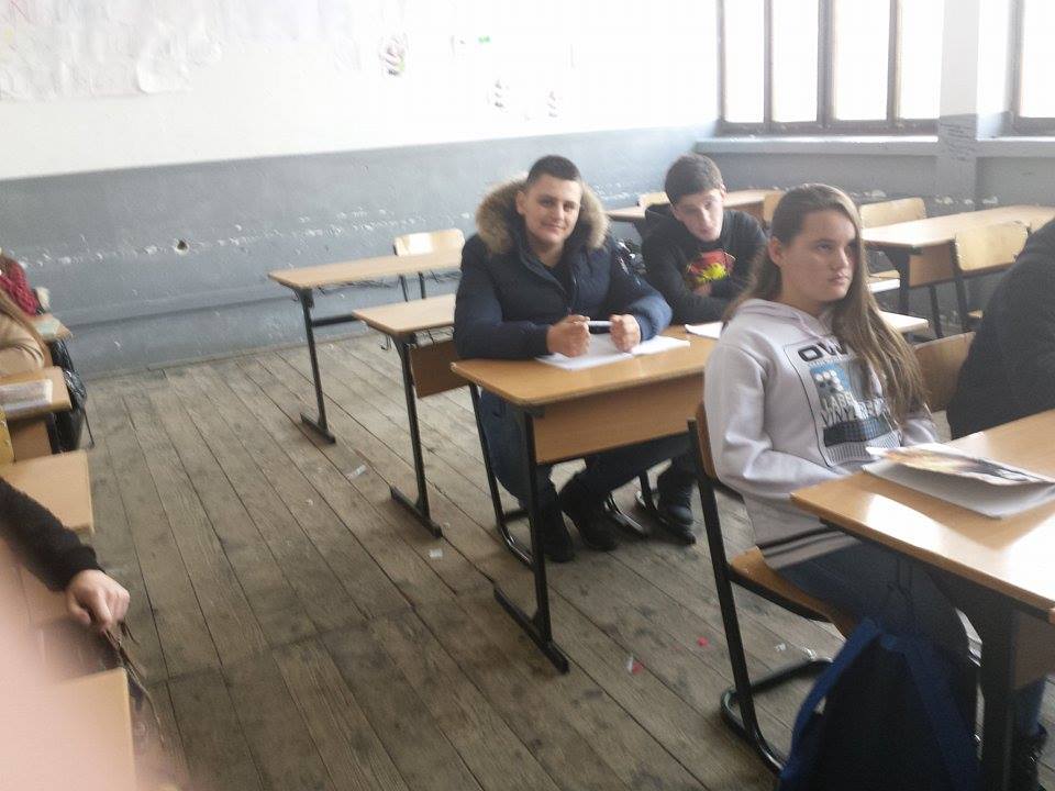 Uz pristanak direktorice, gosti su ukratko ušli i na čas u jednom odjeljenju devetog razreda u nastavi na bosanskom jeziku.