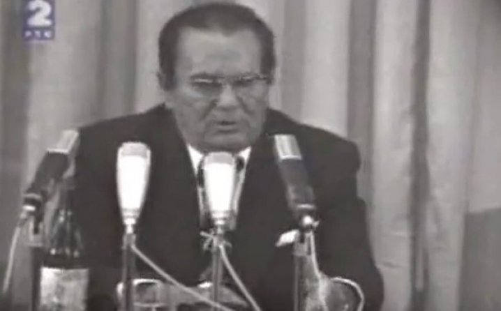 Ovo je snimljeno 3. aprila 1975. godine kada se Tito obraćao javnosti, ali skoro ništa nije moglo da se čuje jer se morao boriti sa svojim pudlicama, koje su konstantno lajale.