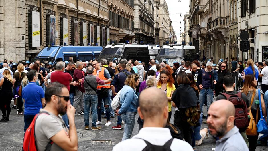 Učesnici protesta koji su se u glavnom gradu Italije okupili nakon dogovora na društvenim mrežama, uzvikivali su da je “virus (COVID-19) prevara osmišljena za izazivanje krize”, da “ima ljudi koji četiri mjeseca nisu primili platu” i da su gladni.