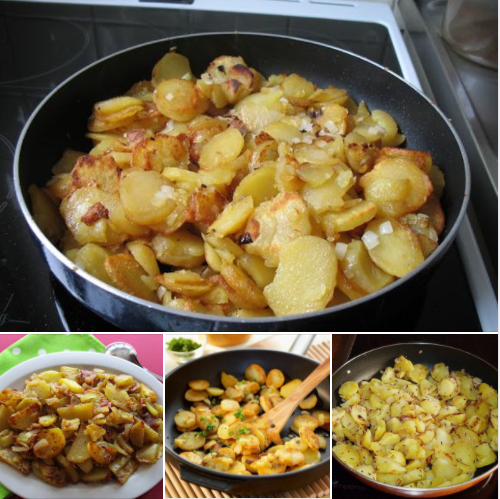 Za ovaj recept dobro je koristiti krumpir koji je skuhan dan prije, iako to nije nekakvo pravilo mozete slobodno skuhati, ohladiti i pripremiti isti dan.Ono sto je najvaznije: koristiti krumpir koji je vostane teksture, ne brasnaste.Mozete pripremiti na dva nacina, najprije krumpir skuhati na pola, pa onda prziti, ili direktno prziti bez kuhanja.Ja sam se odlucila za kuhanje + przenje.Za potpuno uzivanje ovog jela koristite maslac. Naravno mozete pola maslac pol ulje ili samo u ulje, ali preporucujem da probate samo sa maslacem.
