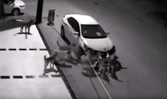 Usred noći pojavila se skupina divljih uličnih pasa te su iz nepoznatog razloga počeli gristi i uništavati automobil, piše Jutarnji.