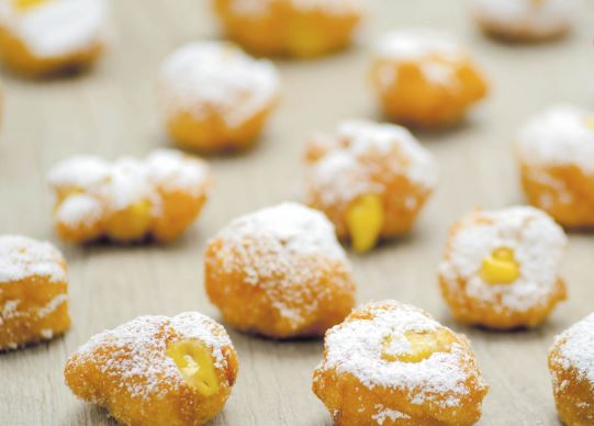 Izvadite pržene fritule na papirnati ručnik kako bi upio višak ulja. Kada se dovoljno ohlade, štrcaljkom ih napunite džemom ili drugim omiljenim namazom. Pospite ih šećerom u prahu prije posluživanja.