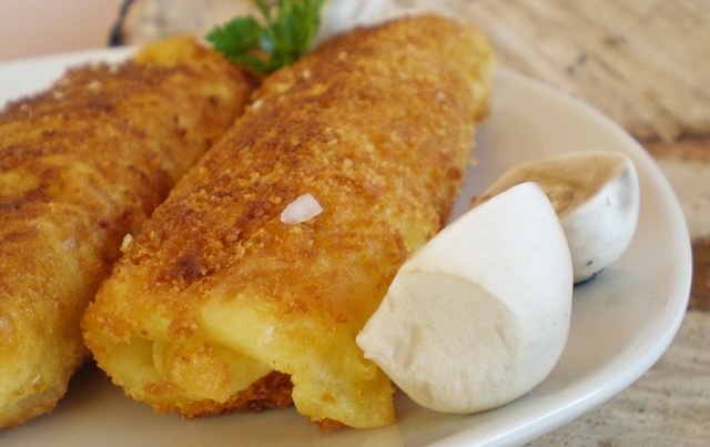 Ostavimo da se ohladi i dodamo 1 žlicu pirea od rajčice, 2 jaja, 20 dkg svježeg kravljeg sira, 2 nasjeckana mlada luka, soli, papara, malo začinskog bilja po želji.
