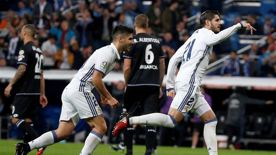 Nogometaši Real Madrida pobijedili su u 15. kolu Primere na svom Bernabeu Deportivo s 3-2, a s 35. uzastopnom utakmicom bez poraza u svim natjecanjima oborili su i klupski rekord.