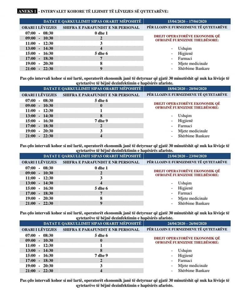 Prije dva dana ministar zdravlja Arben Vitia najavio je da će od danas, 15. aprila svi građani Kosova imati pravo da izađu iz svojih domova kako bi podmirili svoje osnovne životne potrebne, ali samo na sat i po vremena.