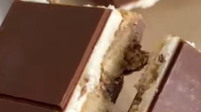Prelijte sloj istopljene bele čokolade, pa ostavite kratko da se stegne. Zatim stavite tiramisu fil i poravnajte.