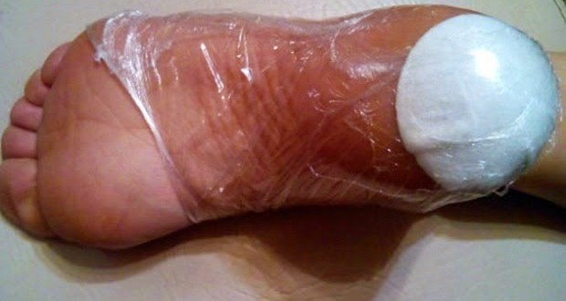 Oblog staviti na petu (žuljeve, stopala,) umotati najlonskom kesom i obuti čarapu. Ostaviti preko noći.