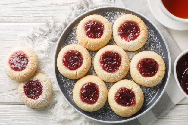 Stavite kekse u pećnicu zagrijanu na 180 Celzijevih stupnjeva i pecite 12 minuta. Nakon pečenja ostavite ih da se u potpunosti ohlade. Kada su hladni, prvo ih pospite šećerom u prahu. Nakon toga u lončiću malo zagrijte pekmez na laganoj vatri i njime punite udubljenja.