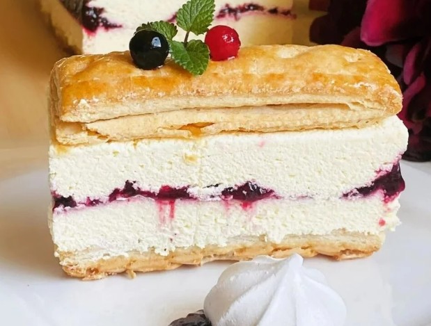 Savjet: Ako vam lisnati keksi nisu pri ruci, gotovo isti kolač možete napraviti s klasičnim lisnatim tijestom. Tijesto razvaljajte i prepolovite po dužini. Koru pecite 20 minuta na 180 stupnjeva, prohladite i nastavite slagati kolač prema uputama.