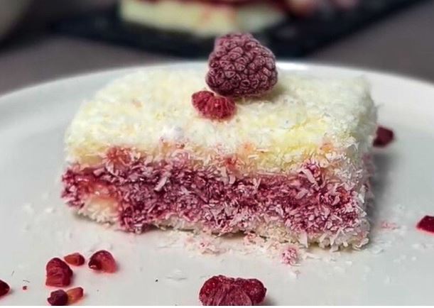 Rezati na kocke pa spojiti. Uvaljati u kokos.