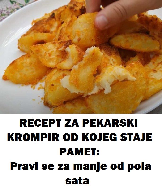 Pecite u rerni na 180 stepeni oko 25-30 minuta, dok krompir ne porumeni, a ako niste sigurni, onda nožem probodite da provjerite da li je mekan. Pečeni krompir izvadite iz rerne i uživajte.