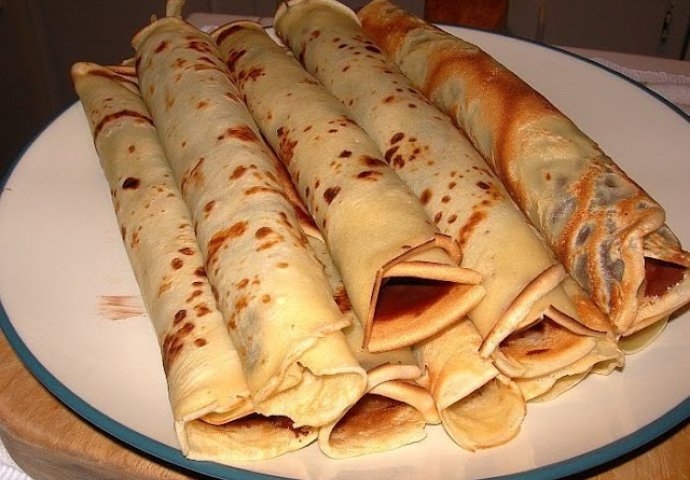 Kada se jedna strana palačinke ispeče, prevrnuti je na drugu stranu. Prije pečenja svake palačinke dodati u tavu nekoliko kapi ulja.