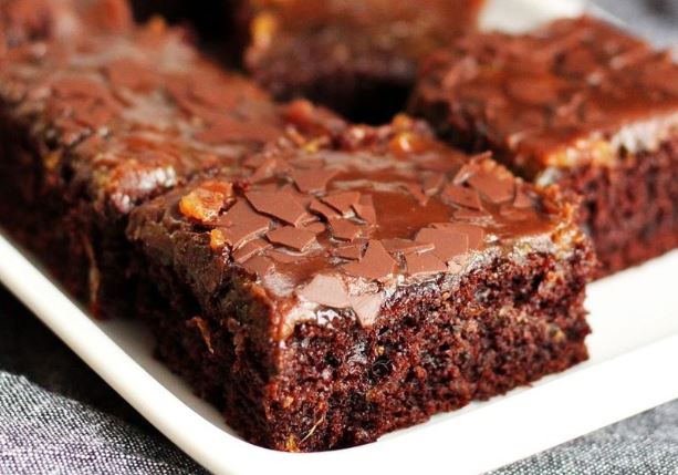 Smjesu izliti u pleh (20 puta 28 cm) obložen papirom za pečenje pa peći oko 30 minuta na 180 stupnjeva. Pazite da se kolač ne prepeče – gotov je čim se krene odvajati od rubova pleha.