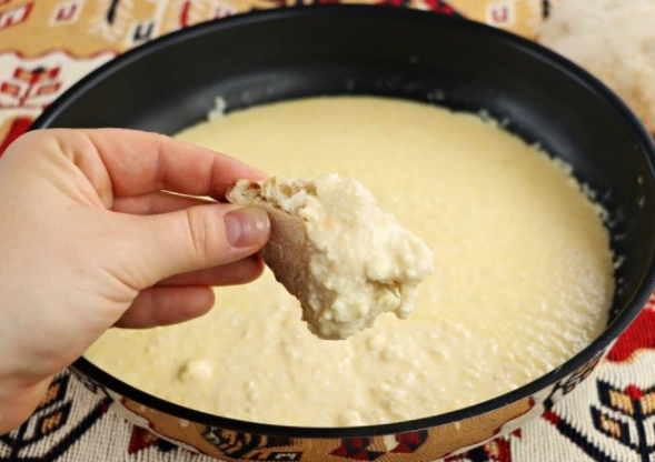 Topa je veoma jednostavno jelo koje se pravi od putera, sira, mliječnih proizvoda i jaja, a koje se servira nakon vode i hurme.