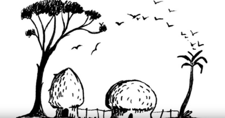 Drveće i kolibe