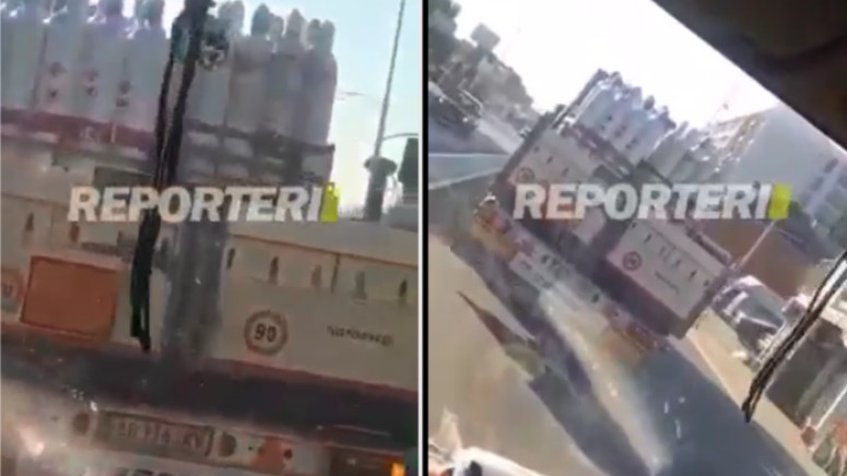 Kamion iz Srbije natovaren bocama kiseonika uslikan je danas kako ide ka Prištini, prenosi Reporteri.