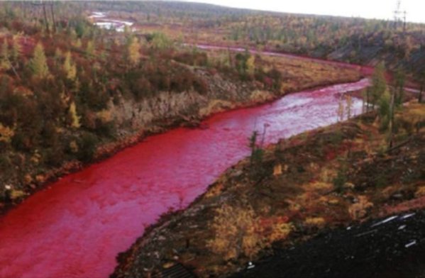 Stanovnici Tjumenjske oblasti u Rusiji objavili su na društvenim mrežama fotografije rijeke Molčanke, koja je postala crvena, izjavila je portparol uprave ruske oblasti Galina Jevsejeva.