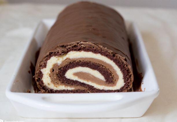 Umutite žumanjke sa šećerom pa postupno dodajte smjesu brašna, kakaa i sode. Od bjelanjaka napravite čvrst snijeg pa ga umiješajte u smjesu sa žumanjcima. Pecite 20 minuta na 175 °C. Zarolajte u roladu i pustite da se ohladi.