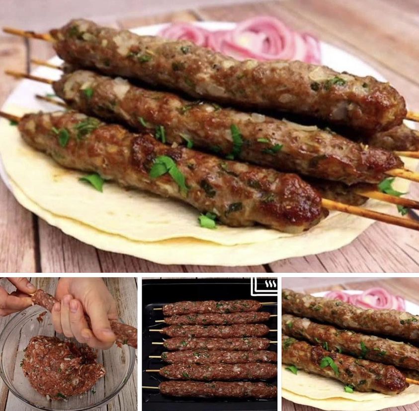 U mleveno meso dodajte sitno seckani crni luk i peršun, pa začinite po želji. Dobro sjedinite. Uzmite drvene štapiće za ražnjiće i onda obmotajte meso skoro celom dužinom. Poređajte u nauljeni pleh i pecite na 190°C oko 25 minuta. Izvadite kebab, okrenite i pecite još 5 minuta.