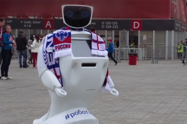 “Pročitao sam vijest da mnogi engleski navijači imaju sumnje koje se odnose na sigurnost posjete Rusiji. Ne trebate se brinuti. lično ću vas čuvati. Pratit ću vas u Msokvu i sačuvati od svih problema”, kaže robot AlanTim.