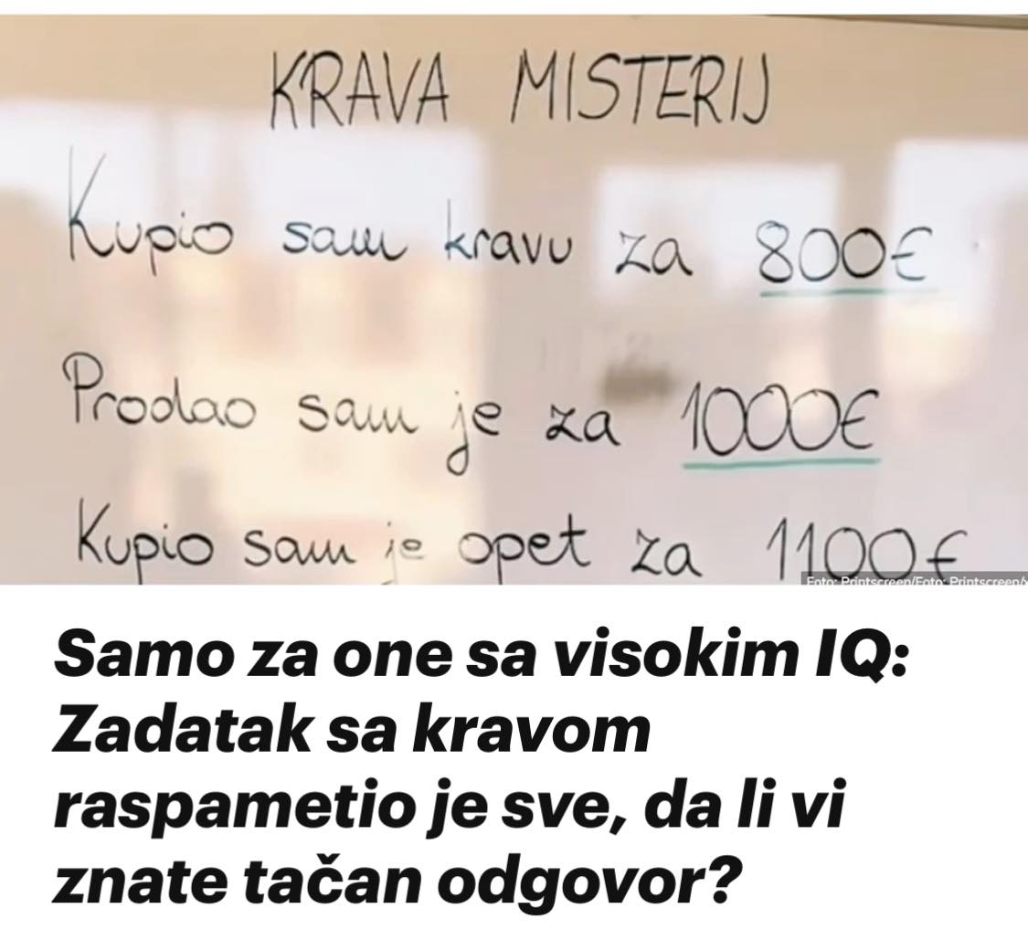 Eto, ponovo je aktuelna „misterija jedne krave“, manje ili više lude, pa vam dajemo za zadatak da izračunate koliko je na kraju zaradio čovek koji je preprodajom krave želeo da dođe do profita.