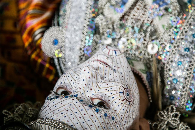 Ovo je neobičan način šarenja mlade i rijetko se može drugde vidjeti. Na lice mlade stavlja se više slojeva boja, počevši od “bjelila”, onda ide dosta jaka plava, crvena i zlatna boja. Etnolozi pojašnjavaju da tri zlatna kruga, simbolizuju životne cikluse, povezane jedan sa drugim sa zlatnim putevima prolaska kroz život. Unutrašnji crveni krugovi su simboli plodnosti, odakle su rođene crvene i plave tačkice, želeći joj zdravu i sretnu porodicu.