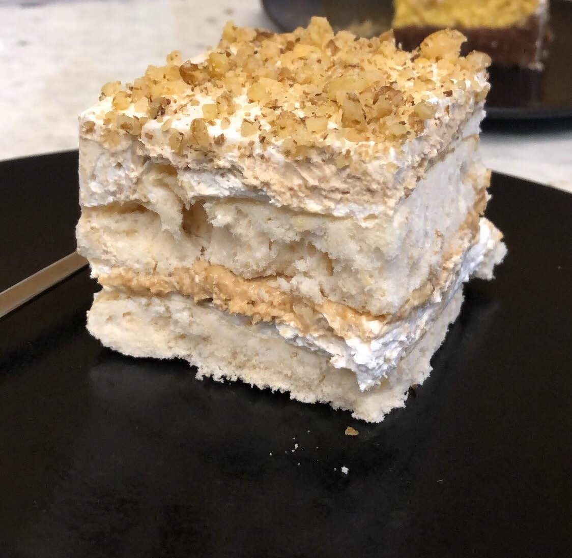 10 bjelanjaka– 400 gr šećera– 1 kašika octa– 200 gr sjeckanih prženih lješnjaka