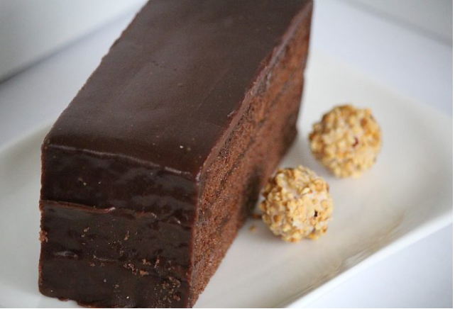 Smjesu izlijte u pobrašnjen kalup i pecite na 180° nekih 30-40 minuta. Čačkalicom provjerite je li biskvit pečen. Kad je pečeno i ohlađeno, premažite prokuhanom marmeladom od džema. Stavite u frižider da se stisne. Na ohlađeni kolač prelijte čokoladnu glazuru i stavite u hladnjak da se sve stvrdne.