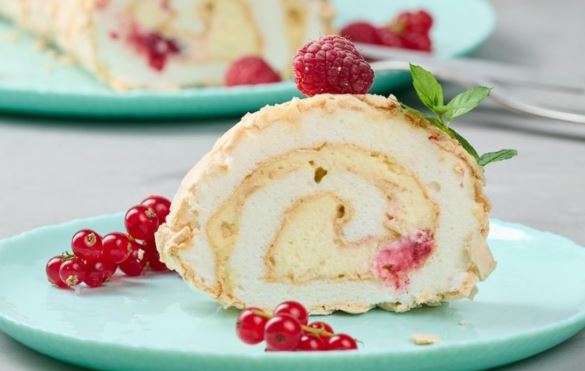 – Mikserom blago umutite belanca, pa dodajući malo-pomalo šećera, mutite dok se šećer ne rastopi. Pred kraj mućenja dodajte jabukovo sirće. Smesu ravnomerno rasporedite preko podmazanog pek-papira koji ste stavili na pleh od rerne i pecite 35 minuta na 160 stepeni. Izmiksati šlag, dodajte sir i po želji šećer, te namažite koru čim se malo ohladi. Poslažite maline preko kore i zarolajte je uz pomoć papira. Stavite u frižider da se dobro ohladi.