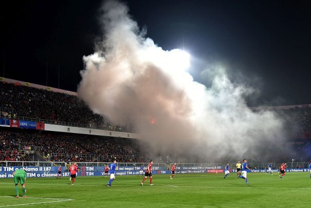 Albanci su u teren ubacivali pirotehnička sredstva, a glavni sudac meča bio je primoran da prekine utakmicu. Selektor Albanije Gianni De Biasi bio je razočaran nakon utakmice zbog ponašanja navijača.
