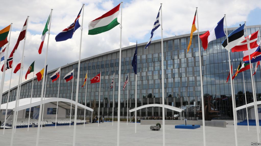 Ispred novog sjedišta NATO-a u Briselu postoji limeni spomenik sa vremenskim pregledom kada je koja država pristupila Alijansi.