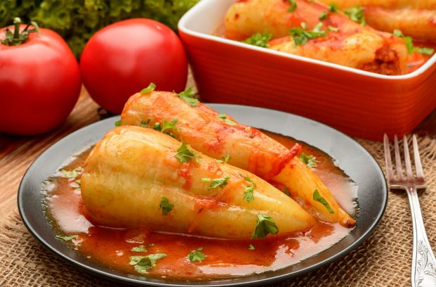 Paprike očistite od sjemenki. U zdjelu stavite mljeveno meso i redom dodajte sve sastojke pa dobro izmiješajte. U tavi zagrijte ulje i na njemu blago popržite brašno pa dodajte rajčicu. Dolijevajte vode dok ne dobijete željenu gustoću umaka.