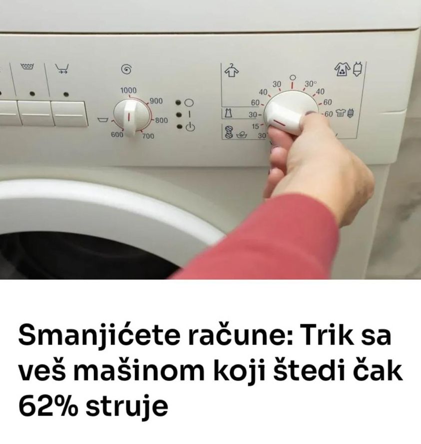 Stručnjak za štednju i domaćica Kajl Grant podijelila je genijalan savjet koji se odnosi na veš mašinu. A sve što treba da uradite jeste da promijenite podešavanja na mašini i smanjite jačinu temperature. Pa tako, ukoliko perete odjeću koja i nije toliko zaprljana, hladnija temperatura je sasvim dovoljna da se prljavština otkloni.