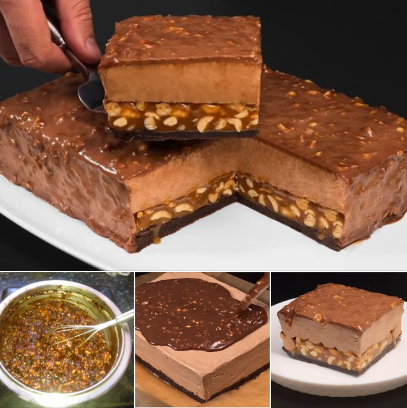 Za koru:200 g čokoladnog keksa,70 g putera,30 ml mleka.Za fil:300 g čokolade,600 g krem sira,50 ml kondenzovanog mleka,100 ml slatke pavlakeZa karamel fil:220 g šećera,40 ml vode,100 g putera,100 ml neutralne pavlake,120 g kikirikija.Za glazuru:130 g mlečne čokolade,130 ml neutralne pavlake,70 g seckanog kikirikija.