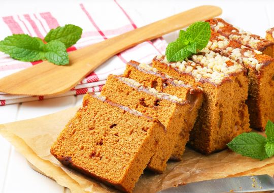 Pecite u zagrijanoj pećnici oko 40-45 minuta ili dok čačkalica umetnuta u sredinu kolača ne izađe čista. Pustite kolač da se ohladi u kalupu prije nego što ga izvadite. Kada se potpuno ohladi, izrežite ga na željene komade.