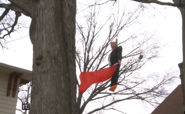 Prema nekim izvještajima, lutku je „popeo“ američki veteran, ali on je odbio da razgovara sa medijima. Mještani kažu da se lutka pojavila ubrzo nakon inauguracije novog američkog predsjednika.