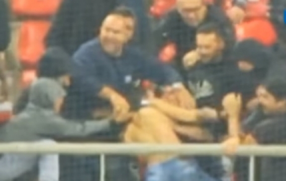 Jedan navijač Panathinaikosa zulutao je u dresu svog kluba među navijače Olympiacosa i nije se dobro proveo. Huiligani iz Pireja počeli su ga tući i skidati mu dres. Nesretni navijač je pretučen, a spas je našao skokom s tribine.