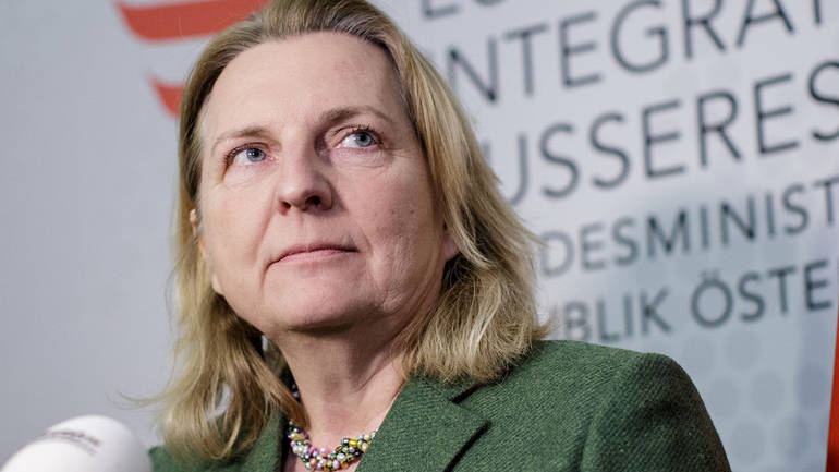 Ekspertica za bliskoistočna pitanja, koja perfektno vlada arapskim i hebrejskim jezikom, je na toj poziciji naslijedila sadašnjeg austrijskog kancelara Sebastiana Kurza. Iako zvanično nije članica nijedne stranke, na mjesto šefice diplomatije ju je postavila ekstremno desničarska Slobodarska partija (FPO), koalicioni partner Kurzove Austrijske narodne stranke (OVP).