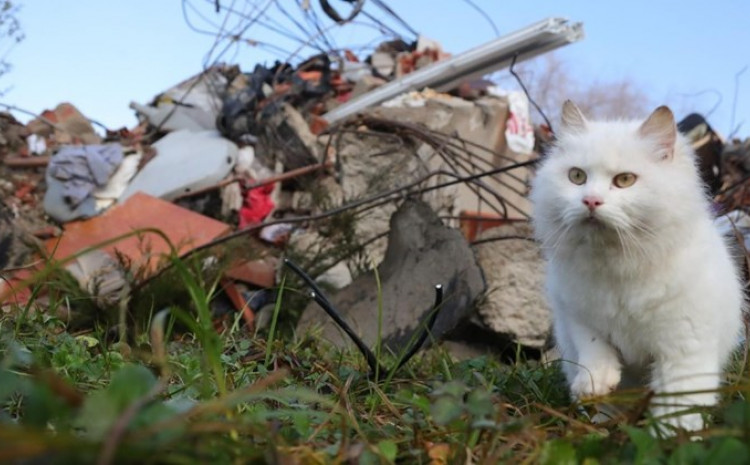Bijela mačka, očito preplašena, pokušavala je pronaći sigurnost koja je u ruševinama djelovala jako nedostižno.