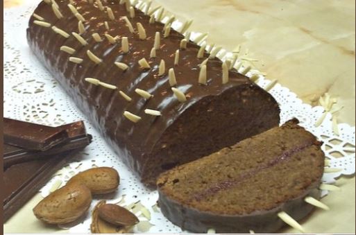 120 g maslaca,50 g šećera u prahu,80 g omekšane čokolade,6 jaja80 g šećera,150 g mlevenog, neguljenog badema,60 g prezli i još:1 mala teglica marmelade od ribizli ili brusnica. Za prelivanje i dekoraciju:150 g čokoladne glazure,60 g badema, narezanih na štapiće.