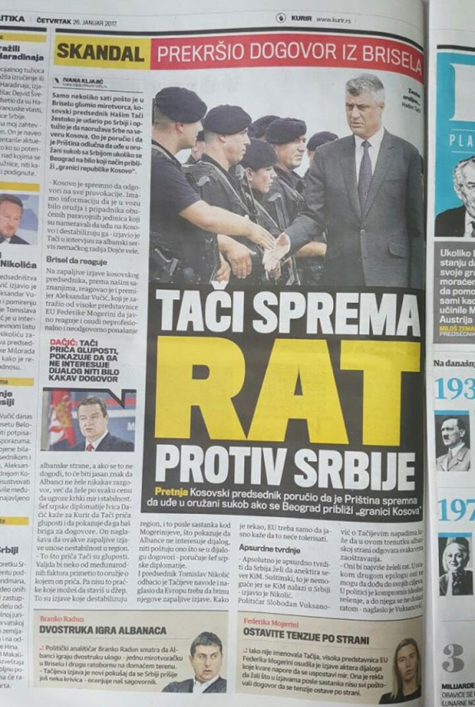 Srpski dnevni listovi, Politika, Večernje Novosti, Kurir, Informer i mnogi tabloidi, tvrde da će uskoro, u februaru, rukovodstvo Kosovo narediti, kako pišu, “invaziju” na sjever Kosova, prenosi portal “Indeksonline”.